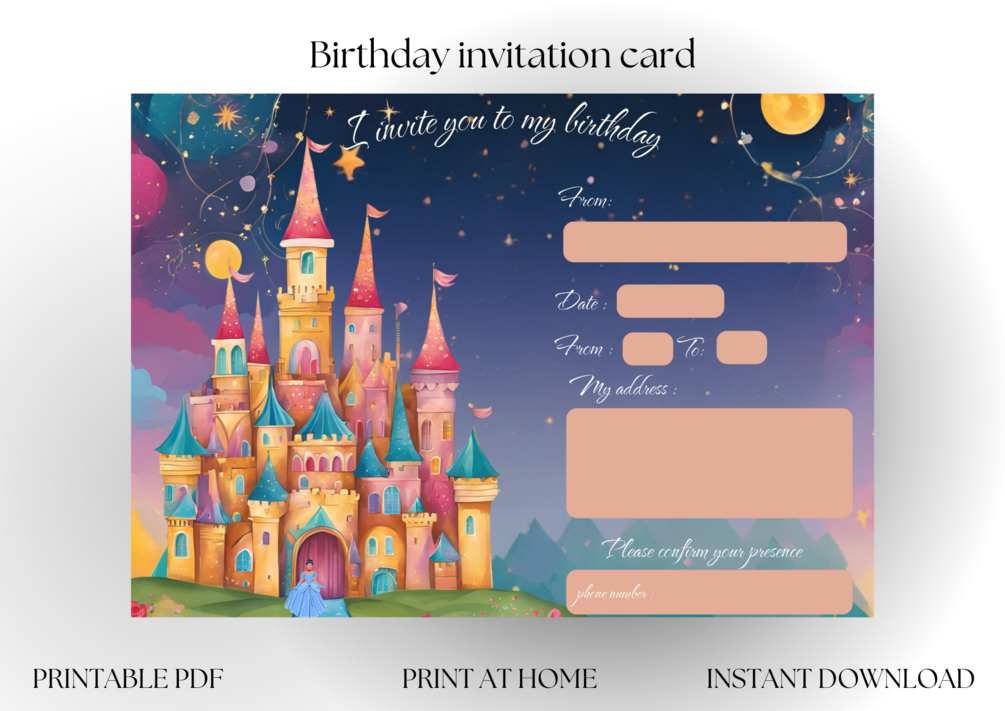 Birthday Invitation Card to Print and Fill - Digital Download